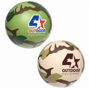 Model No锛歅romotional customized camouflage printing and logo PU stress balls with 7, 6.3 and 5cm diameter |