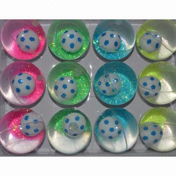 With LED Light Material: environment-friendly TPU Environment-friendly water LED light Size: 45, 55, 65, 75, 85, 75, 85 and 100mm Colors: transparent colors, red, blue, green, purple and glow Various pantone numbers acceptable Customized: Logo imprint available Silk-screen printing and transfer printing Designs are accepted Age: suitable for the children above 3 years old, used as kids toys and promotional item Packing: 45mm Quantity: 24 pieces/display box, 288 pieces/carton (42x 33x 34cm) 55mm: 12 pieces/display box, 144 pieces/carton (39 x 27 x 29cm) 65mm: 12 pieces/display box, 144 pieces/carton (46 x 31 x 45cm) 75mm: 12 pieces/display box, 96 pieces/carton (50 x 33 x 35cm) 85mm: 6 pieces/display box, 72 pieces/carton (59 x 28x 38cm) 100mm: 6 pieces/display box, 36 pieces/carton (44 x 34 x 34cm)